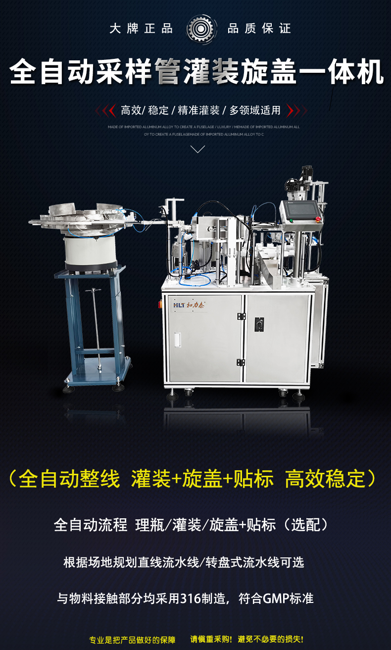 核酸試劑灌裝旋蓋一體機采樣管灌裝生產線病毒檢測試劑灌裝貼標機