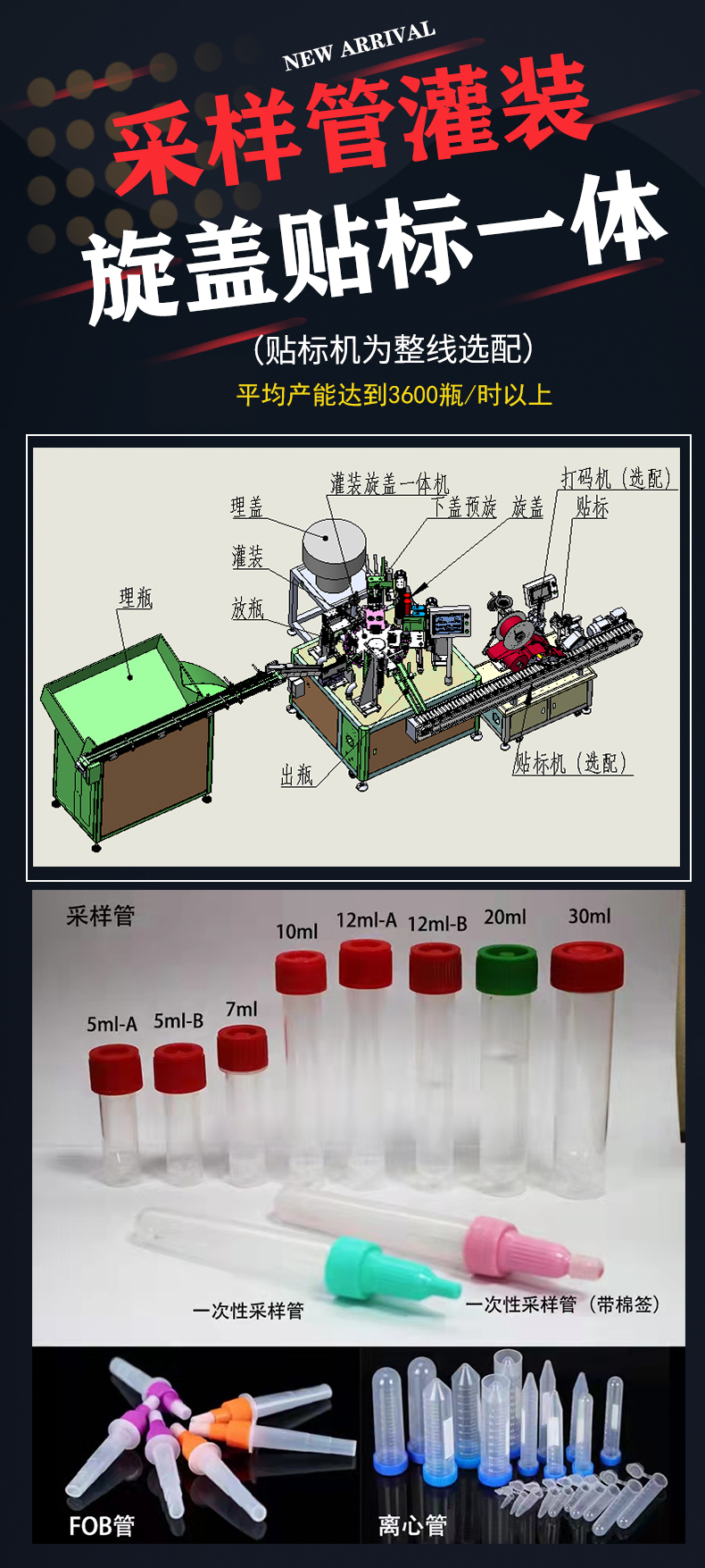 核酸試劑灌裝旋蓋一體機采樣管灌裝生產線病毒檢測試劑灌裝貼標機