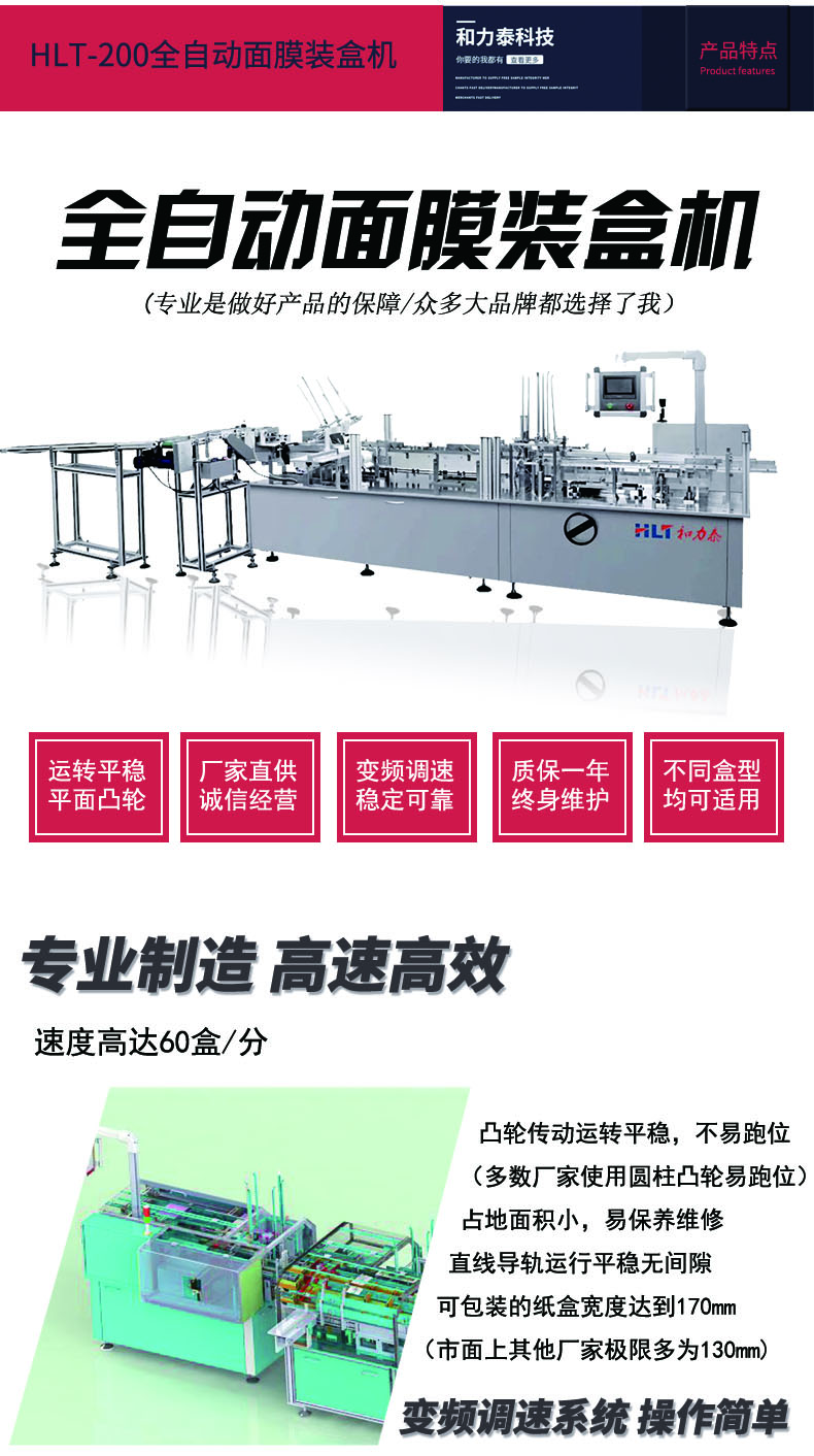 經過近5年的不斷研發和努力,和力泰除了在面膜灌裝水乳灌裝等領域取得成就外,在化妝品后端包裝行業也取得了突破性的飛躍發展,全自動面膜裝盒機、水乳膏霜裝盒機已經成功進入市場的千家萬戶,給各大企業后端包裝提高了生產效率和產品質量,是一些中高端品牌必選產品產品。