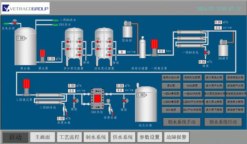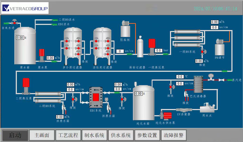 多效蒸餾水機在制藥、食品、飲料、生物、電子等行業用于生產無菌注射用水。