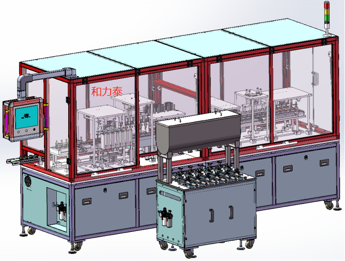 (2)機器操作簡單,產品置于定制的模具中,模具載著產品循環流轉,每個工位依次排列,產品流轉至每個工位,各工位只需完成自己的動作,不存在動作先后銜接,交叉,沒有碰撞。